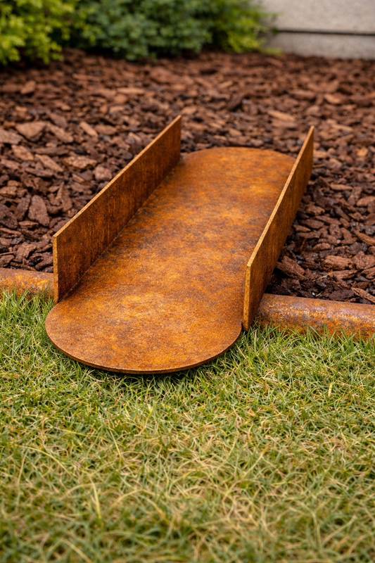 Cortenstahl ist ein spezieller wetterfester Stahl, der bewusst eine Rostschicht bildet. Diese sogenannte Patina schützt das Material dauerhaft vor weiterer Korrosion. Die Rasenkante wird dadurch nicht zerstört, sondern langlebig – mit einer natürlichen, edlen Rostoptik.